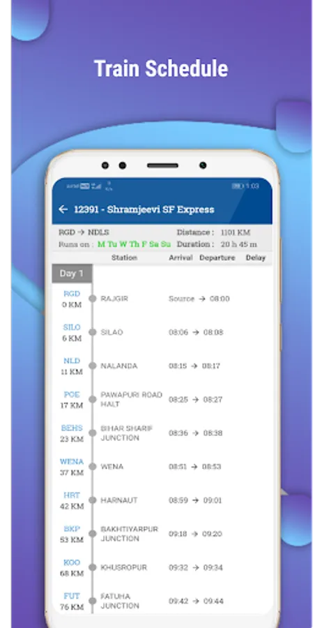 The train app has the Indian Railways timetable offline. You don't have to know train number or names as our Smart search feature allows you to use train source & destination or partial train names even with spelling errors.