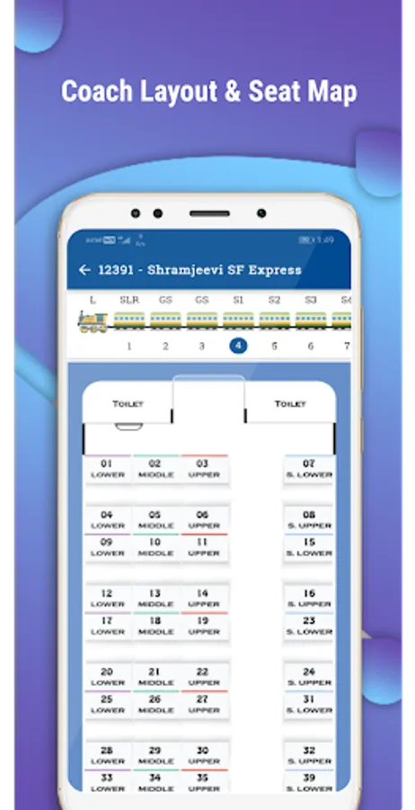 Get information on coach position and seat/berth layout before you board the train. Also shows platform numbers for boarding and intermediate stations wherever available.