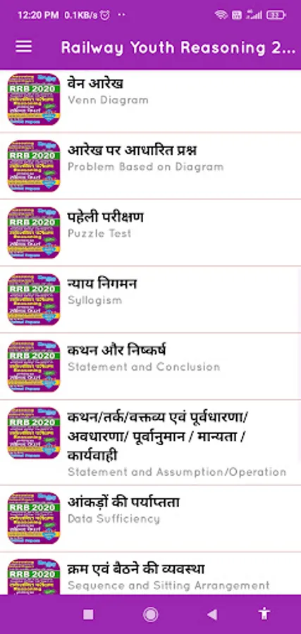 Railway Youth Reasoning 2022 App is the collection of question papers of RRC Group d exams held 2018. This app contains reasoning in the form of pdf with Answer key. These sets of Questions helps in upcoming RRC Group d exams & all competitive exams. all reasonig is important for all exam also.
