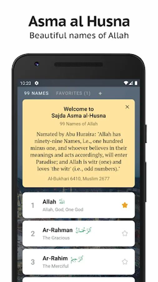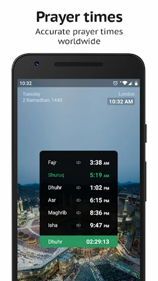 • Set up notifications for prayer with heart-soothing voices of muadhins or other system ringtone.