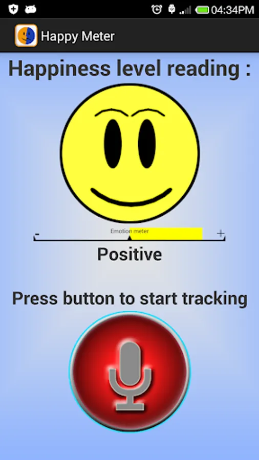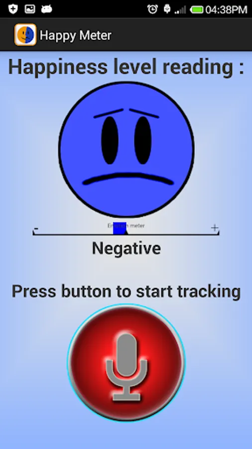 The purpose of the proposed app is to track user's real time happiness state using voice from speech. This app is useful in managing user's emotional state in their activity, e.g. when doing phone calls or just to monitor normal speaking activity. This happiness recognition system is build based on the background knowledge from research on speech emotion analysis, and uses Growing Neural Gas (GNG) technology as its core processing brain.. Real time voice from the user will be captured as an input fragments to the system and from these input fragments, audio features are extracted which is further used for determining the happiness state in user's speech. Before user were able to use the service, user had to create a speech emotion profile first.