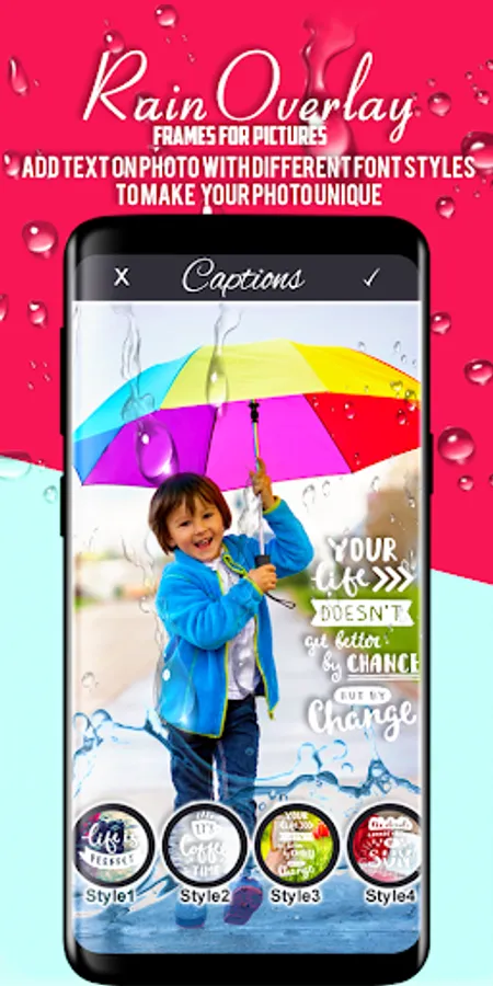 This ultra – modern app came up with the ability of using text on your picture with some illustrative Quotes rain .
