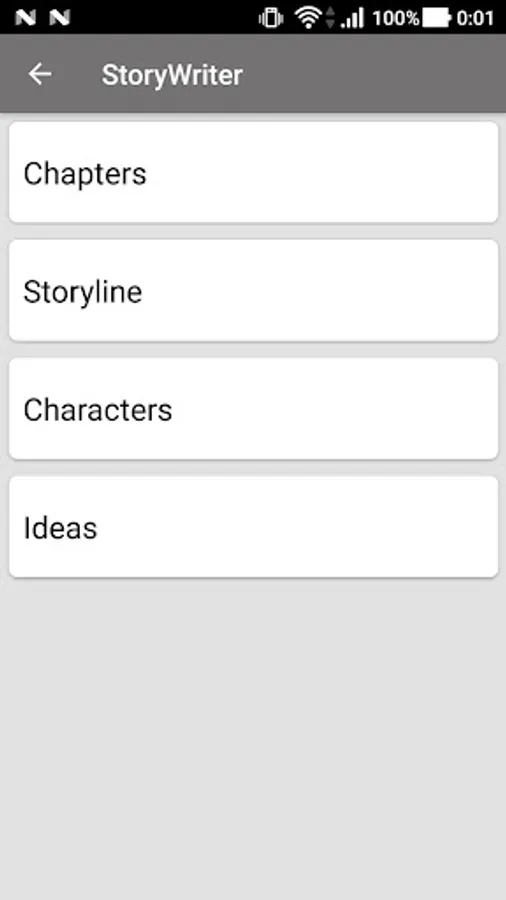 > Folders: Chapters, Storyline, Characters, and Ideas