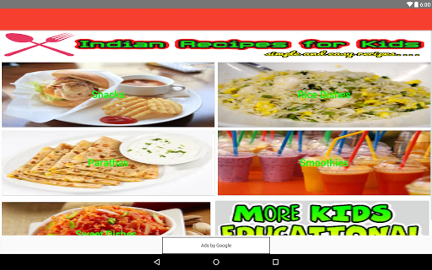 Kids Easy Recipes is for all who wants to cook healthy, easy and quick recipes for their loved ones. The App is designed by making simple User Interface and has variety of recipes. The large variety of recipes will give lot of food options and by using this app you will be able to make yummy meals. This App will give you number of lunch box ideas for kids, So that your kid will not get bore with repetitive food :-).