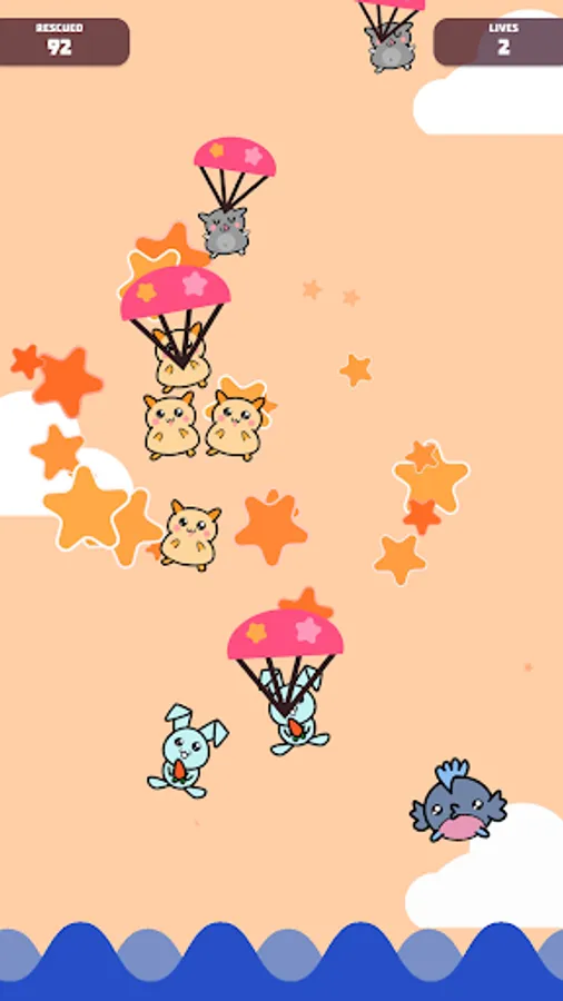 Smash the screen to rescue, how many parachutes will you need to rescue the kawaii animals? The more weight they have the more parachutes you'll need.