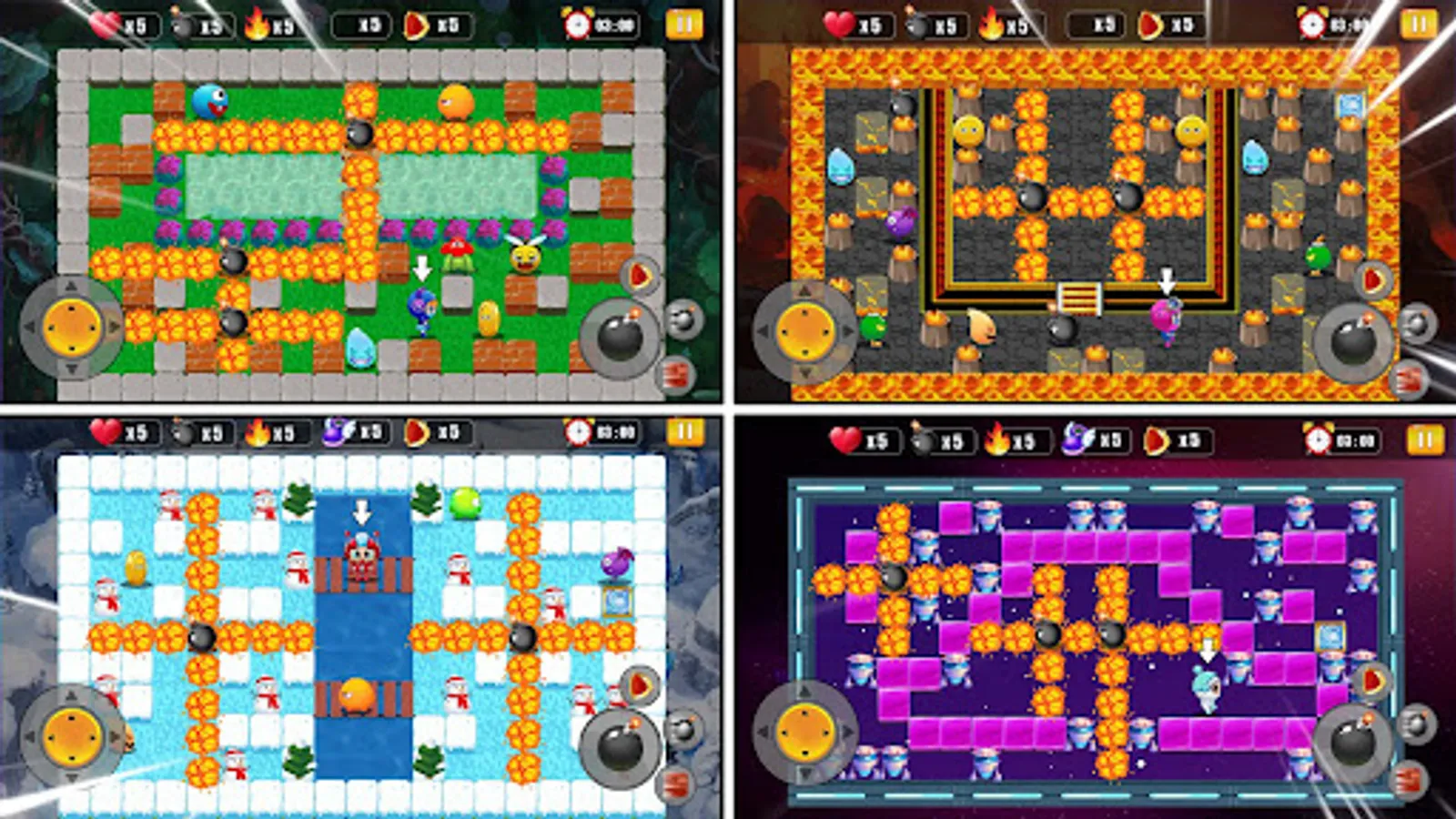 Customize the appearance of your hero & bomb skin effect colors when bom blasting. Choose your favorite free bomber heroes to win the battle offline game.