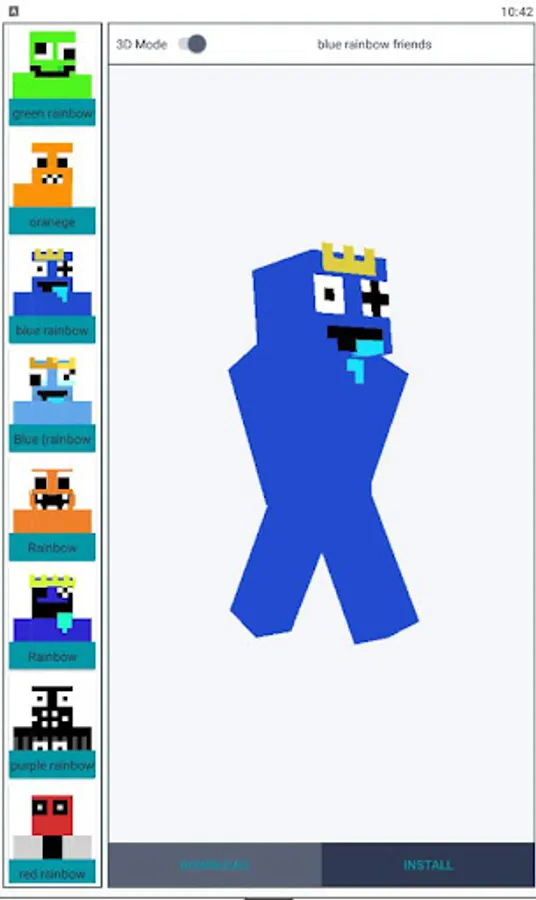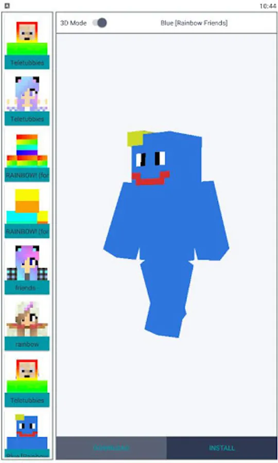 Find mods, maps and various rainbow friends skins for mcpe in one app. Easily install and apply Rainbow Friends custom maps, mods and skins for mcpe with just one click. All maps, rainbow friends mods for mcpe addons and skins are selected and customized to give you the best experience. And now you can explore the big world rainbow friend map extension with your friends using this personalized app.