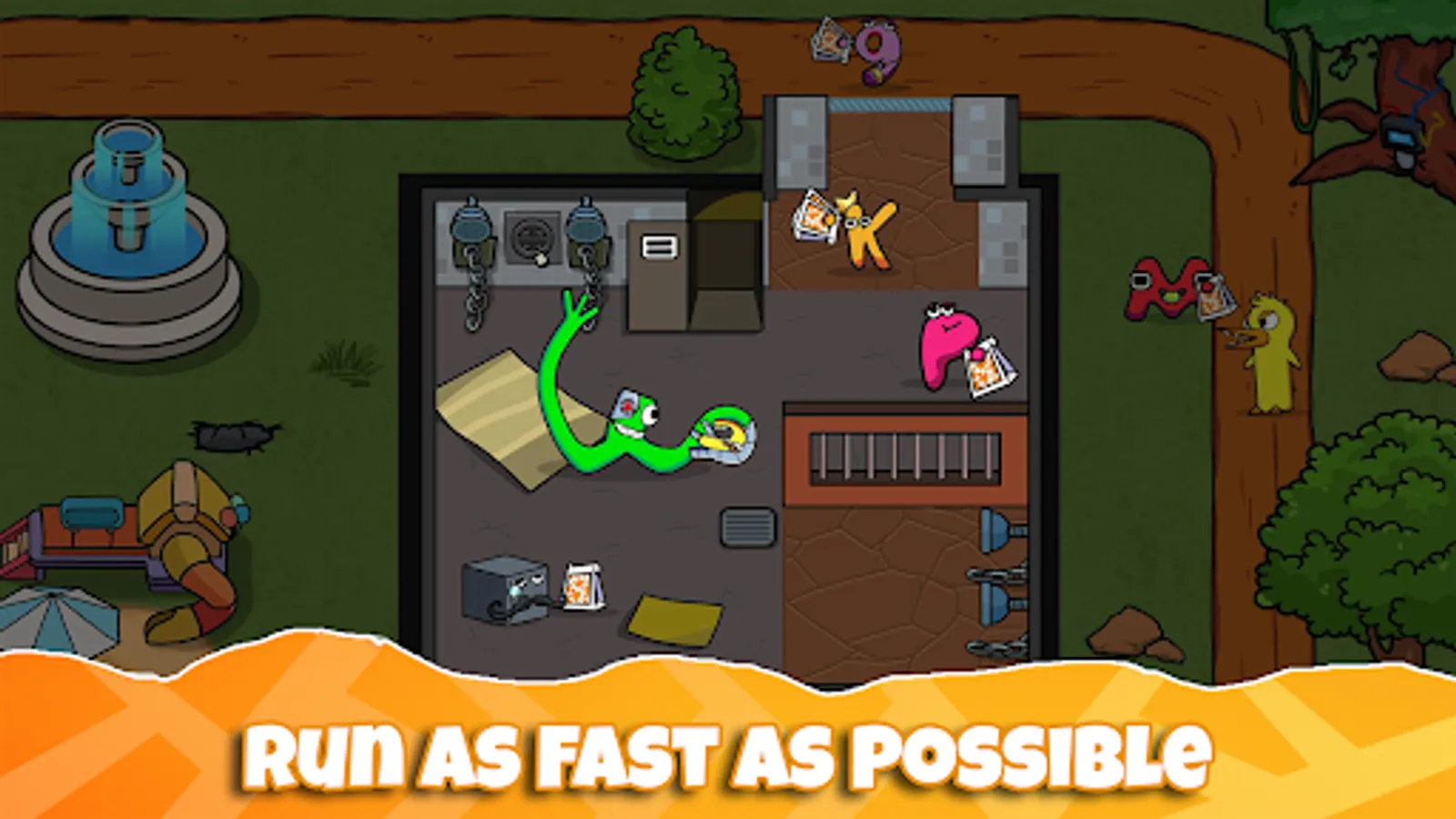 The goal of the Rainbow friends VS Alphabet Lore game is simple - all you need to do is solve challenging puzzles to collect all of the keys. The game contains many unique challenges and hundreds of levels. You will be playing in a Park where you have dozens of challenges and levels awaiting you!