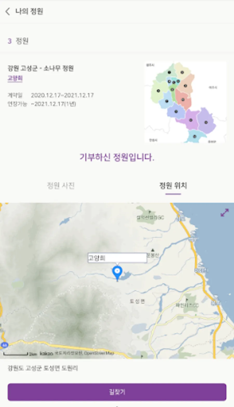 -.I donate to a forest fire area and where a tree is needed, and check the status and location (w3w) information of my companion plant