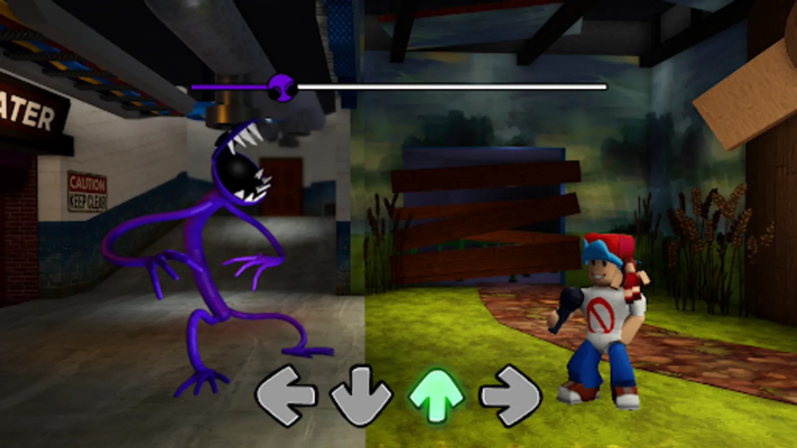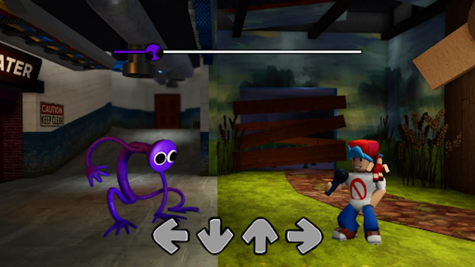 You play as Purple from Rainbow Friends VS FNF opponent named FNF Purple Rainbow Friends has made their way into FNF Based on RB Horror game and we must rap battle all of the pink Rainbow Friends or yellow rainbow friends in order to escape the amusement park called odd world.mod Will Boyfriend and Girlfriend be able to be a better beatboxer than Rainbow Friends or will Rainbow Friends beat BF & GF? Let's find out, that you can make your own FNF battle through this app!