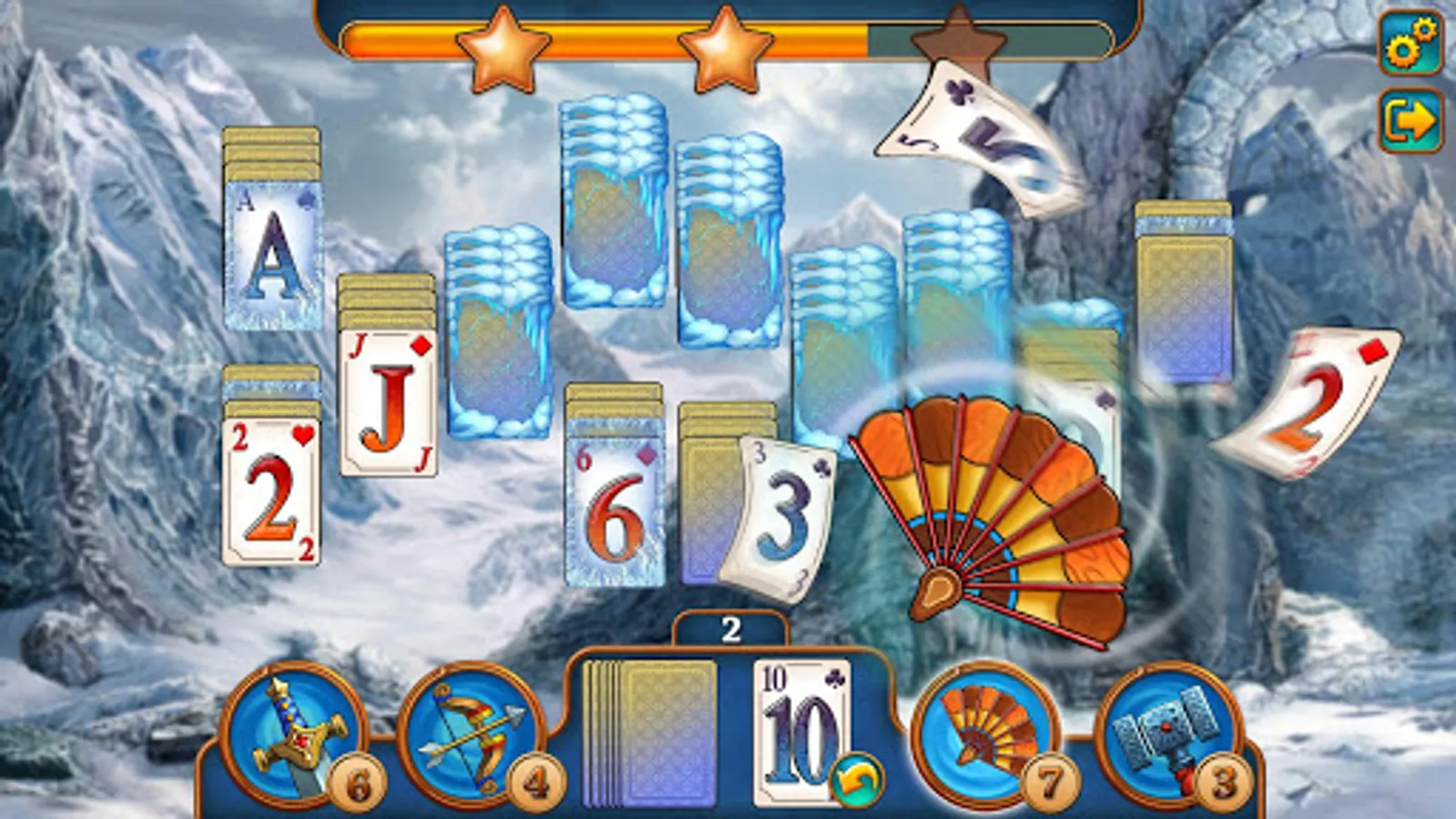 Start a new level and use the Sword to switch out a card from the deck with one you need. The Bow lets you remove any card from the board, the Fan shuffles cards and brings what you need to the top, and the Hammer flips over a portion of the hidden cards!