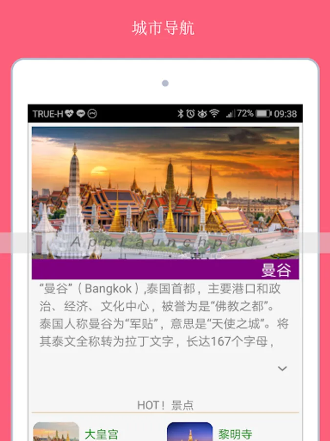 - 包含城市简介、攻略、地图导航、新闻、四大板块。