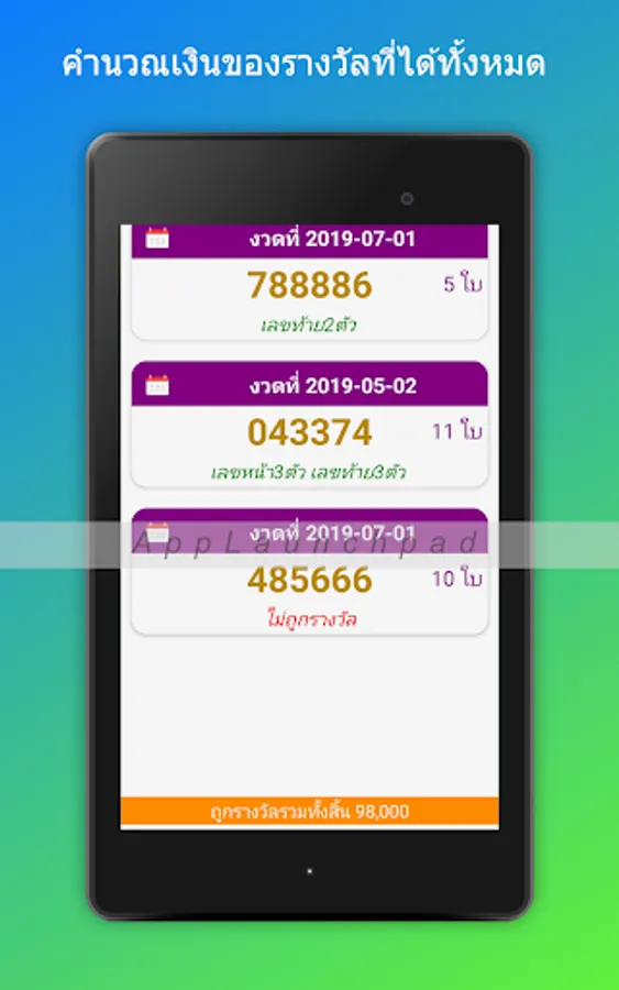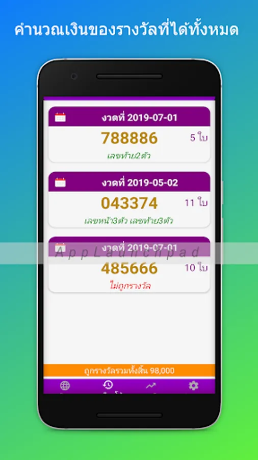 Can record the lottery numbers that were checked and calculate all winnings Menu-my lotto
