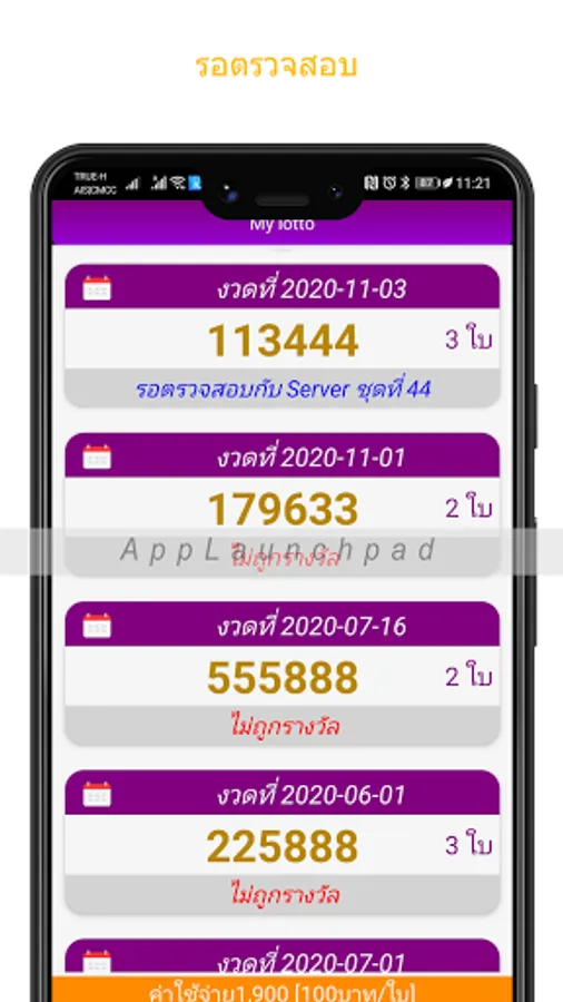 Receive notifications when lottery tickets are issued in Push Notification or In app.