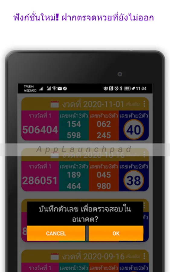 1. + can deposit the lottery ticket in advance! Scan and Save for check up future, update result
