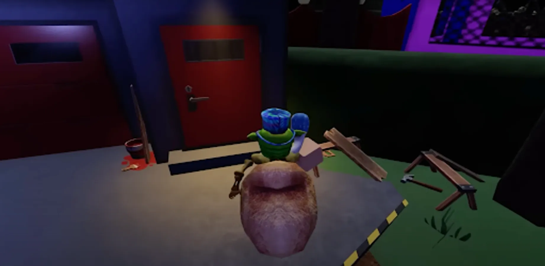 Rainbow Friends 2 game: A player warns the man of a dangerous "monster". The man doesn't believe what you're saying and decides that you can collect light bulbs to send out an SOS signal. Red reappears and unleashes blue and green.