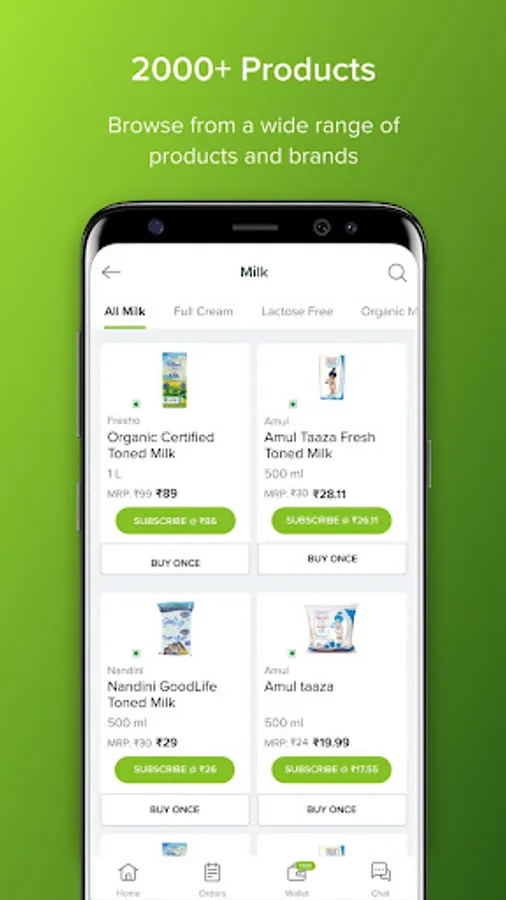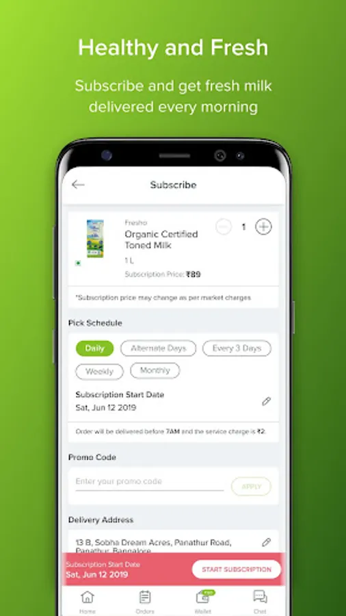 Subscribe for milk and groceries before 10:00 PM every day and get them home-delivered before 7:30 AM the next day. No delivery charges if your order contains a grocery item for the day. No other hidden charges.