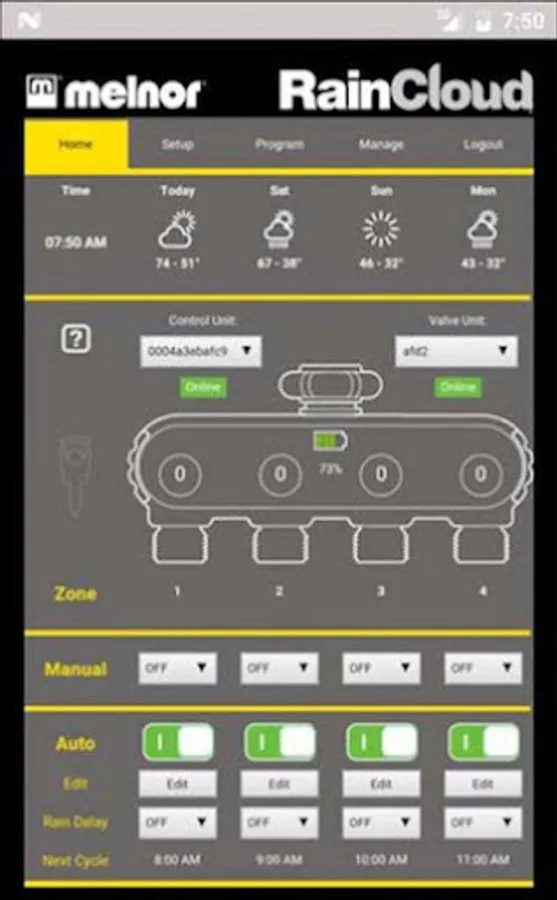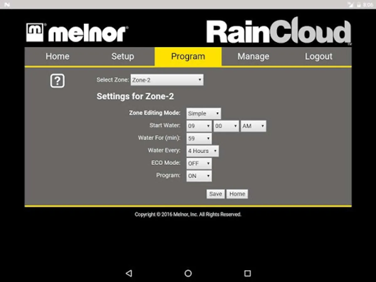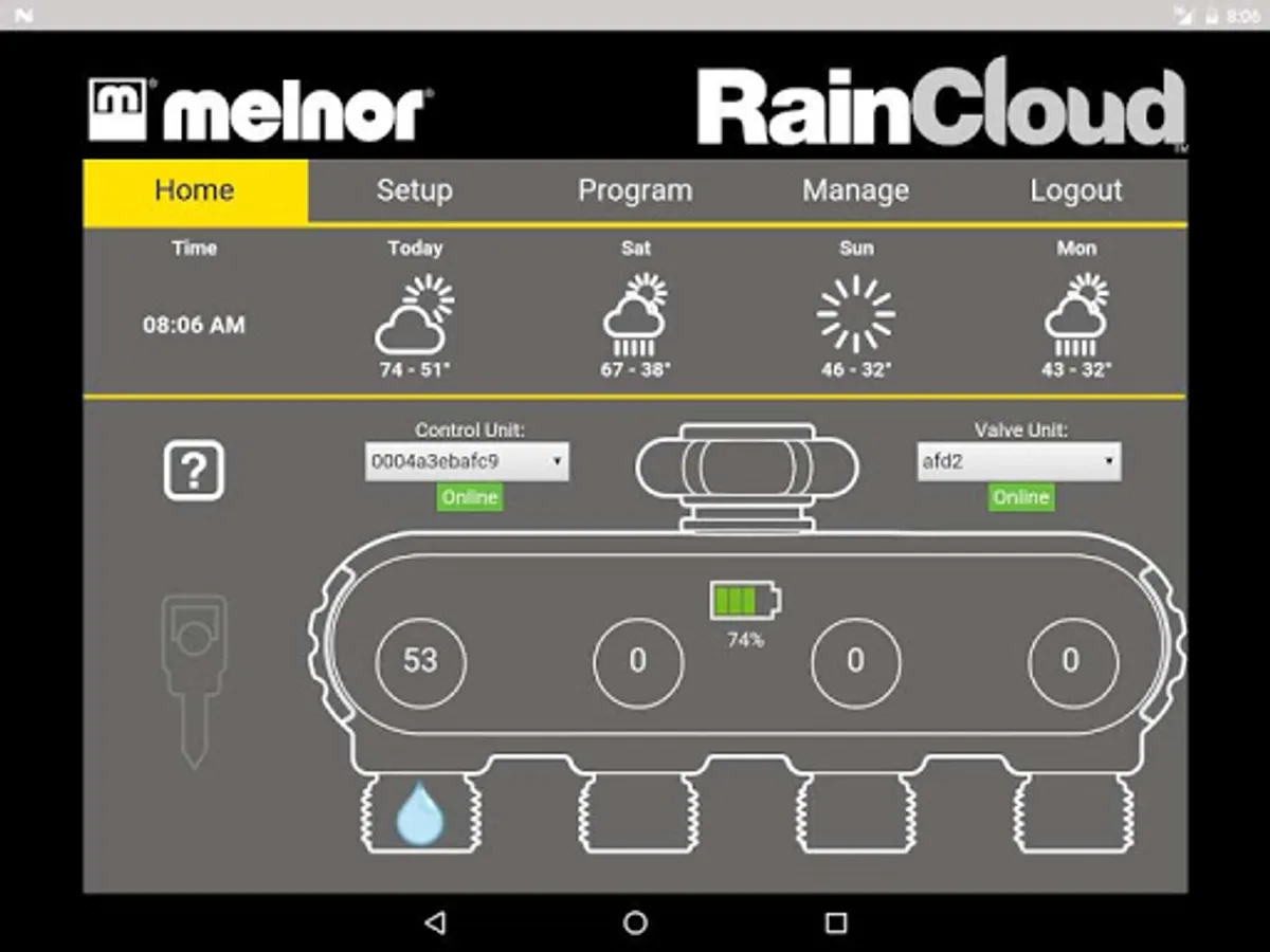 For use with Melnor's RainCloud and WiFi AquaTimer Smart Water Timers. Easily manage watering for up to 4 areas of your lawn and garden from the convenience of your smartphone or tablet. You can even increase the number of watering areas to 8. There is NO FEE for this service for use of this app.