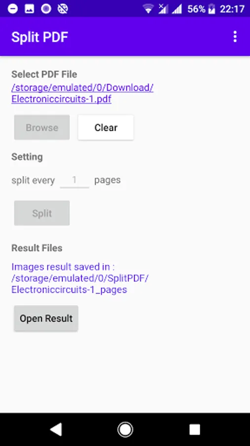 this is offline no needs internet connection,unlike split pdf online service app that needs internet connection.
