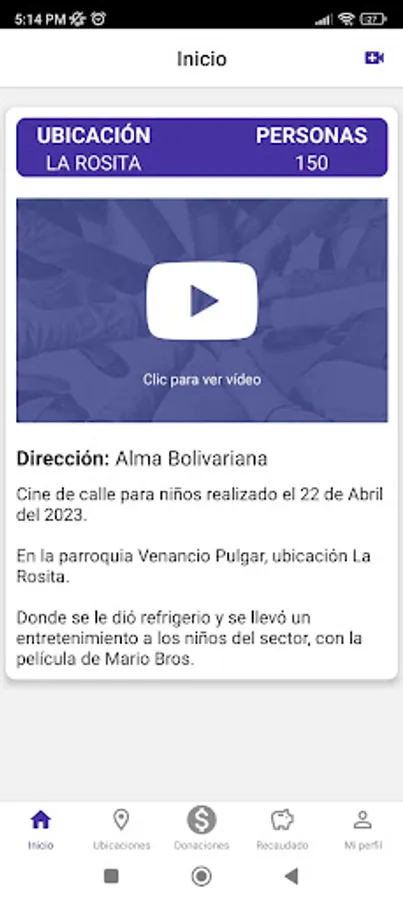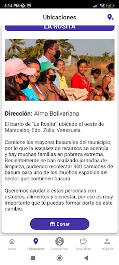 App to make donations to vulnerable people from sites mainly in Venezuela.