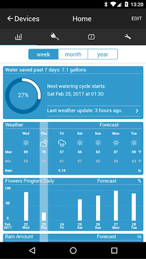 RainMachine Android mobile app allows you to interact with your garden when at home and remotely from anywhere.