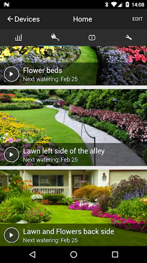 Control, adjust and supervise all your garden irrigation from the palm of your hand. Intuitive user interface allows you to change all watering properties.