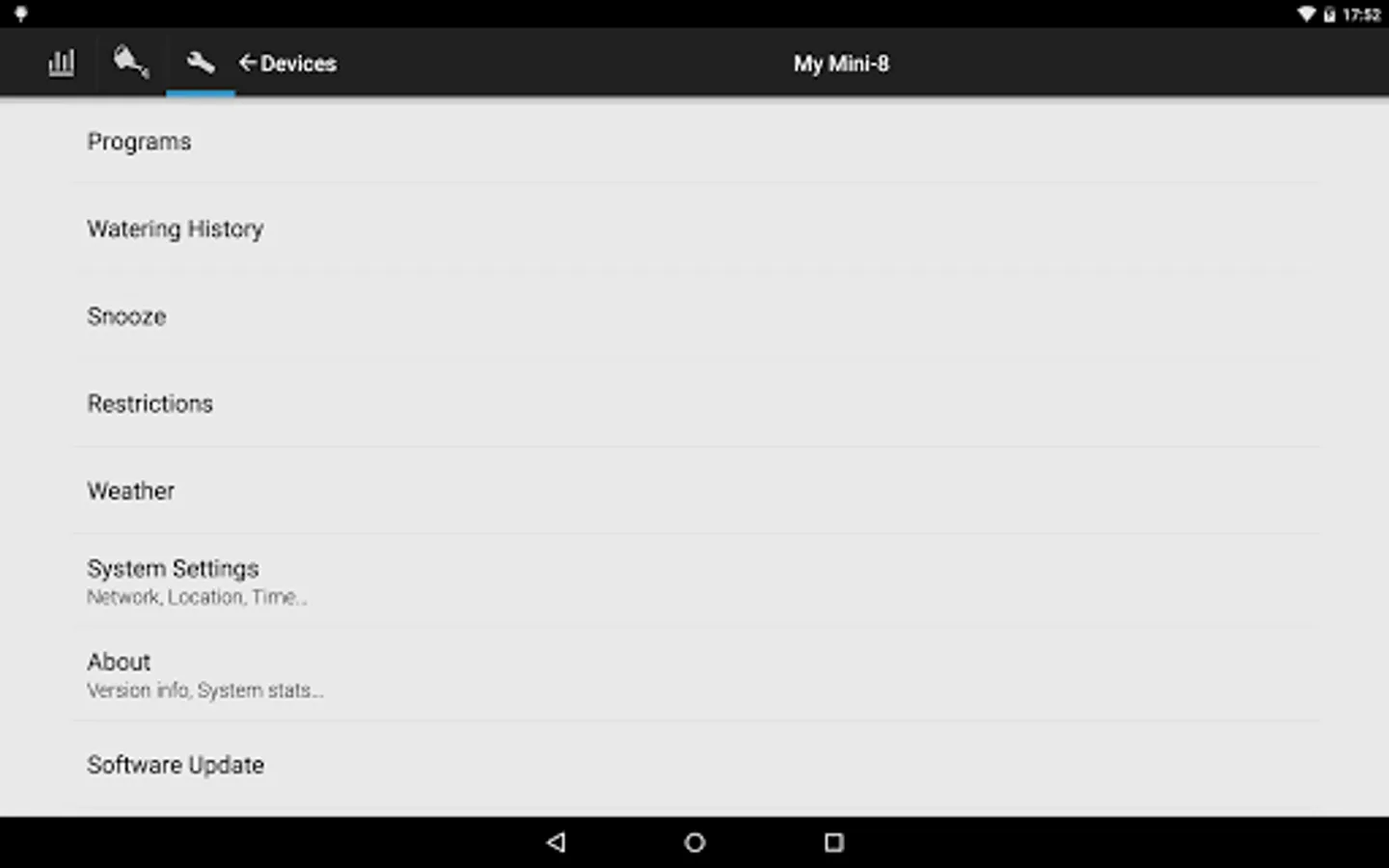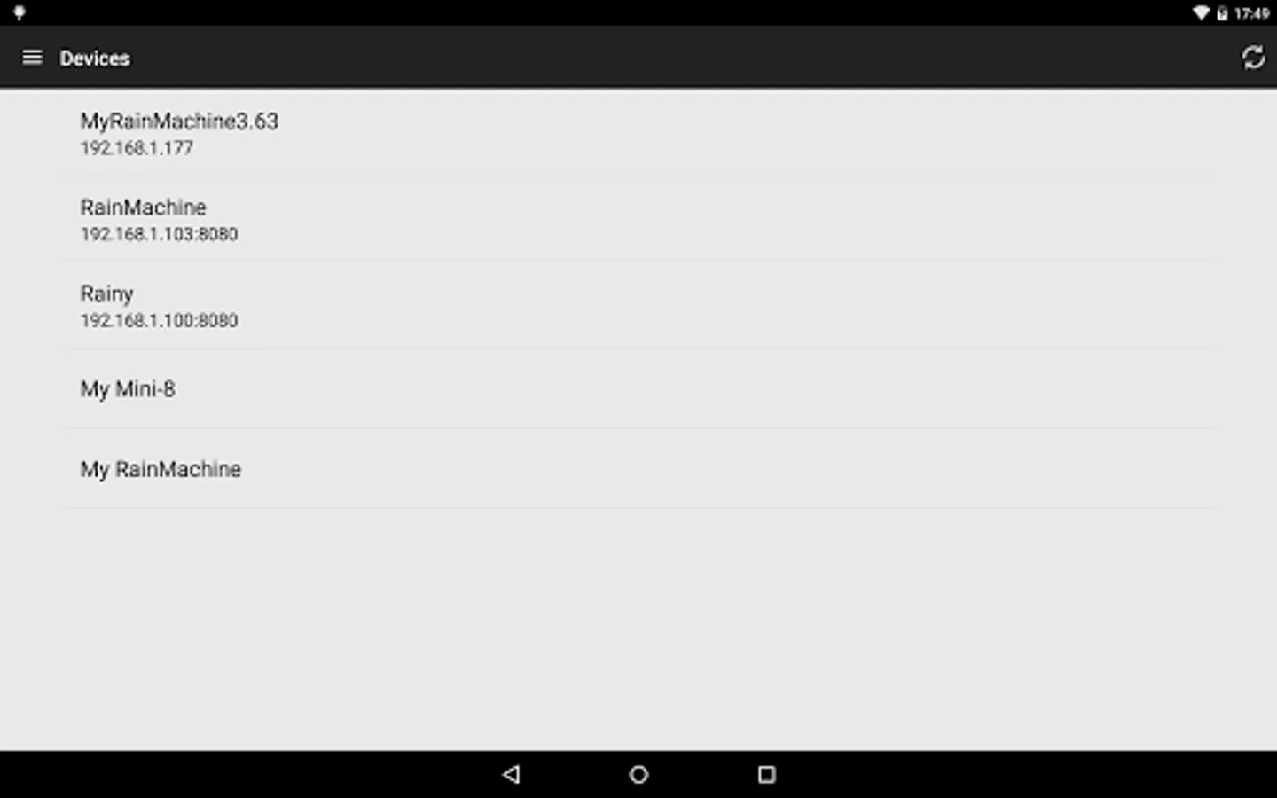 The RainMachine Android mobile app connects your Android phone/tablet to your RainMachine hardware and allows you to control and adjust your watering cycles, change zones and program properties, set restriction, enable weather services, snooze device or pause watering.