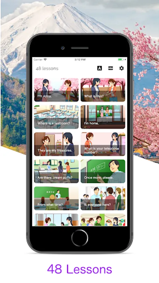 - Lesson with audio, conversation, explaination, phrase, grammar, and sound words.
