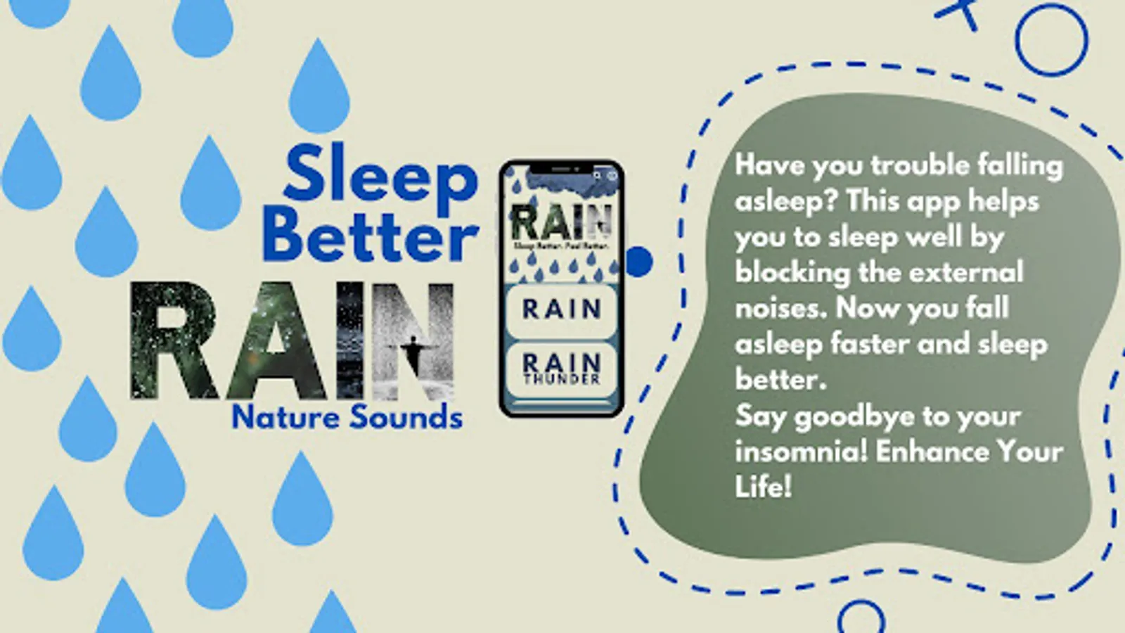 Have you trouble falling asleep? This app helps you to sleep well by blocking the external noises. Now you fall asleep faster and sleep better.