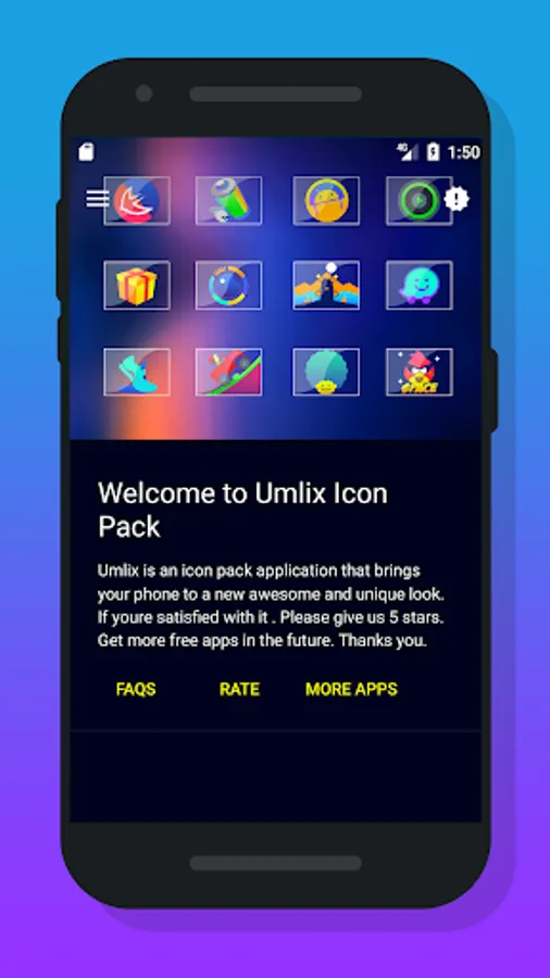 • FOR LG USERS: LG HOME With latest update LG HOME does not support icon pack on some devices.I am still working on it may be it will work in a upcoming release. So in a mean time you have to use a launcher on LG devices.