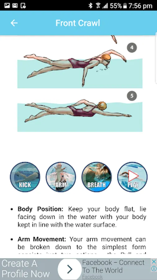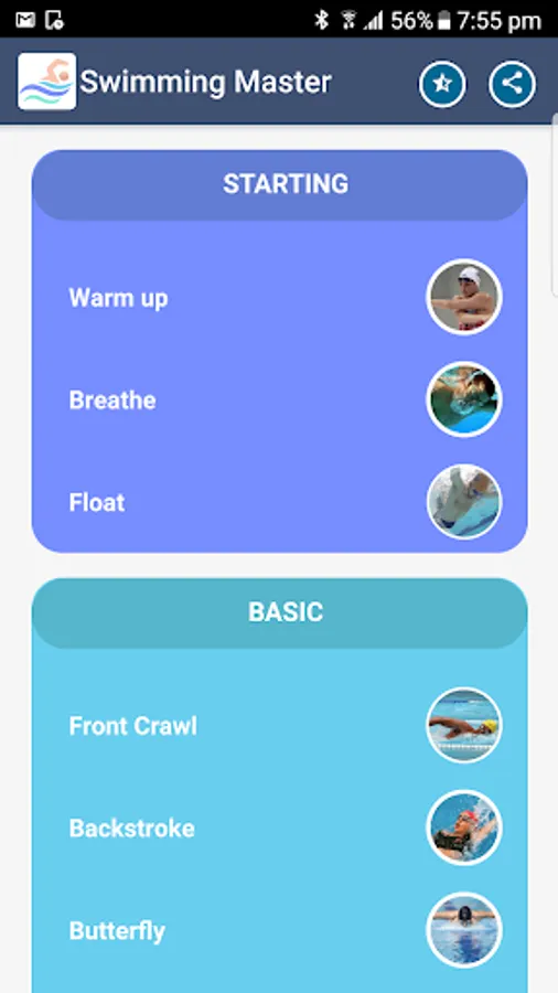 Training app for swimming being a professional swimmer its important to learn all the techniques, body movements, breathing techniques and professional videos will help you understand how to do it .install Swimming Master free app for a better swimmer. All the best
