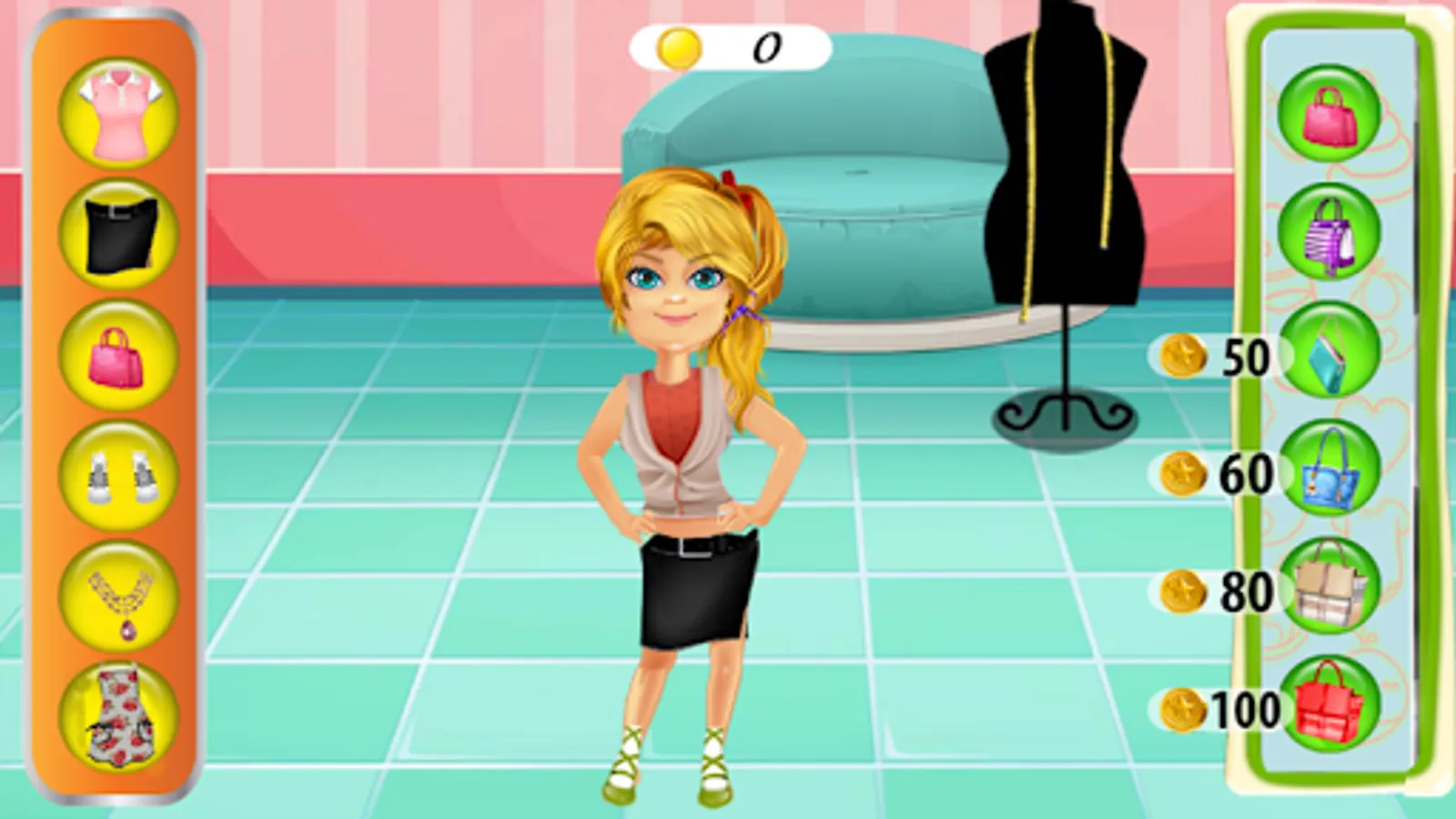 Visit the dress-up section, check variety of girls shirts, bags, shoes, jewelry and dresses. Shopping girl is buying the items for girl's beauty makeover. Apply all makeover items on cashier girl and see everything fits. Cashier girl must look beautiful as it affects the sales.