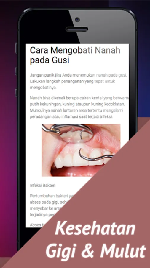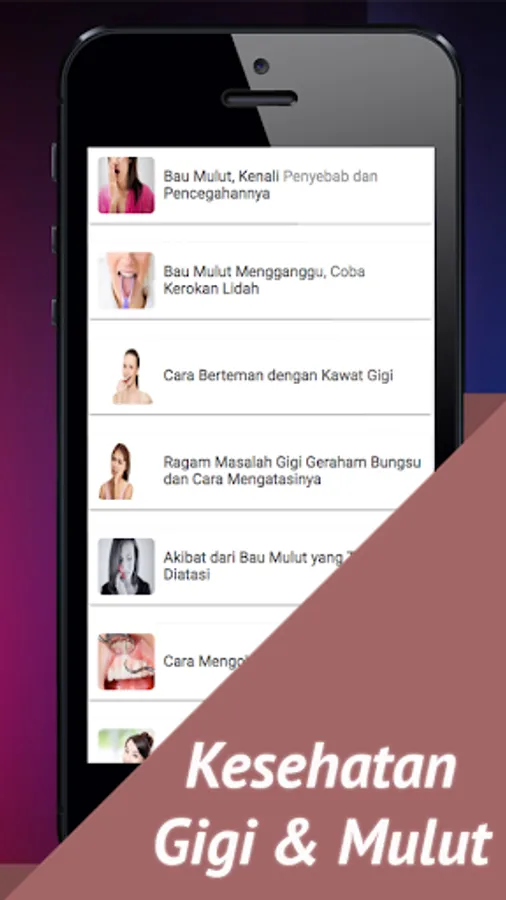 This is an application that provides a variety of information and advice on oral health. You can find everything regarding oral health here, with this application you seemed to bring a book, but you can use anywhere and anytime. Because this application is very simple and lightweight so it does not require a lot of storage space, this application can also be run secra offline. So you do not necessarily need an internet connection to run