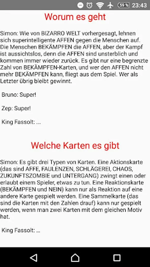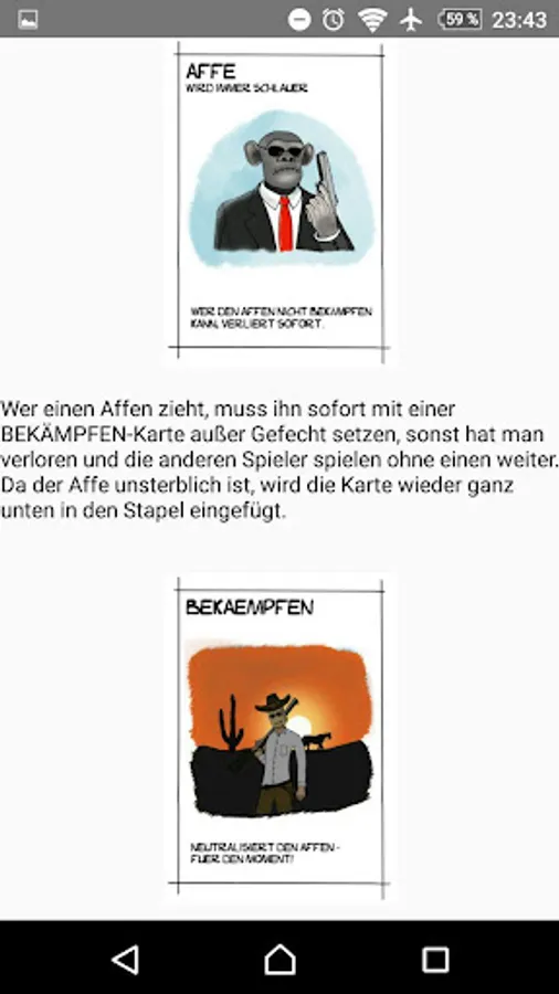 Instructions and sound effects for the Bizarro Welt card game "Achtung Achtung"