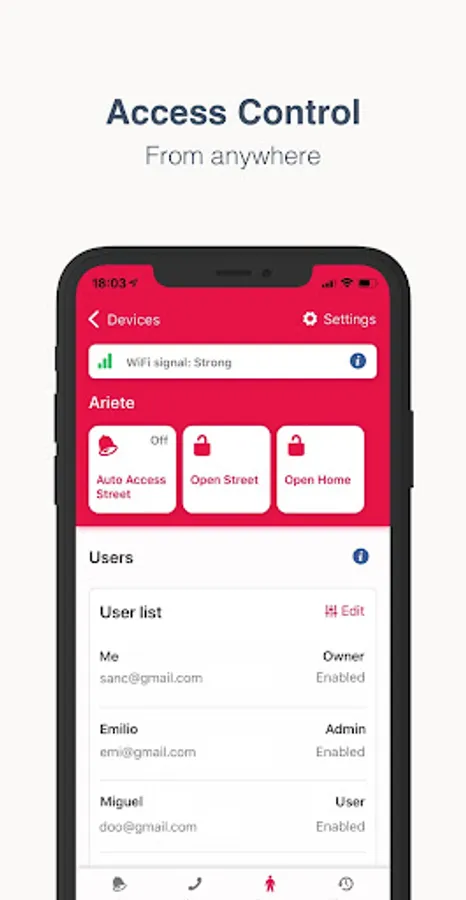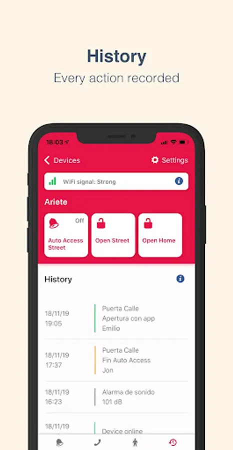 – Missed call opening: Authorize your guests' phone numbers and let them unlock the door with a missed call. Your guests don't need either the app or internet. It's the best option for the front gate or the home door.