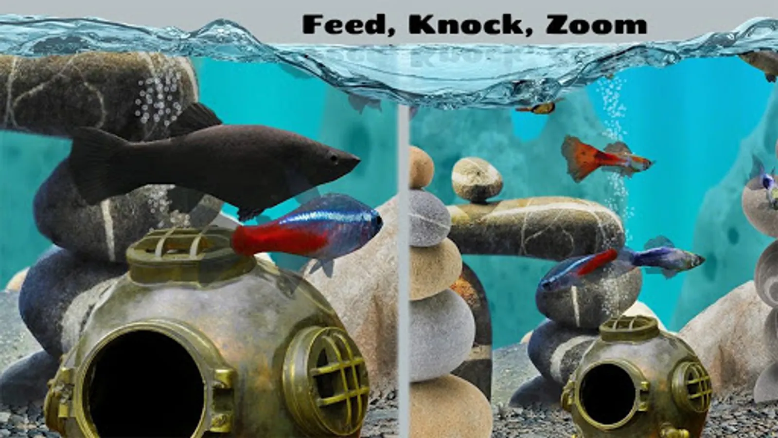 Feed your vibrantly-colored fish, play with them – even annoy them by tapping on the glass!