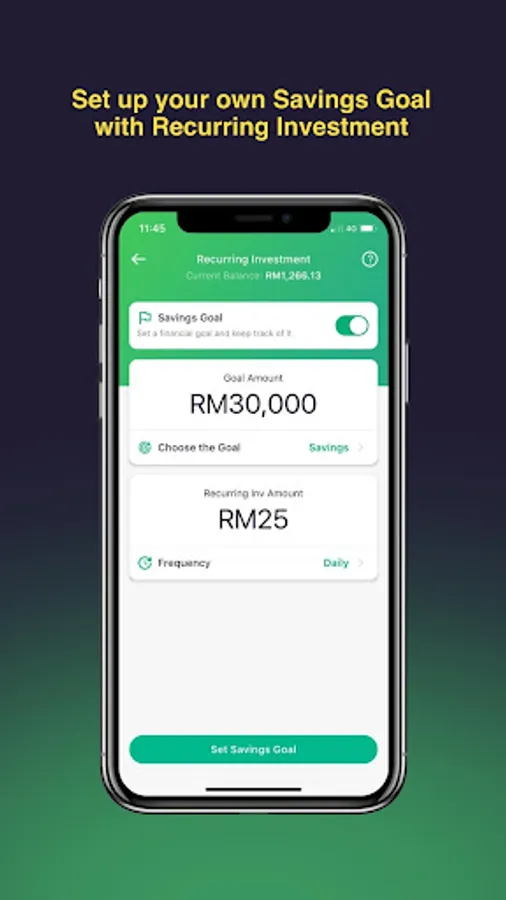 You can also set recurring investment daily, weekly or monthly, or invest lump sum when you have that extra money.