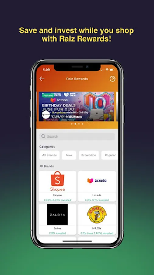 Also, get cash bonus (or cashback) while you shop using Raiz Rewards! Your cashback will get invested into your Raiz account automatically.