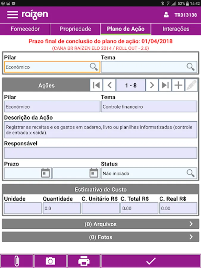 This application enables the ELO Program team register all the necessary data regarding the activities of technical acompamento field made in sugarcane suppliers of ELO Raizen Program.