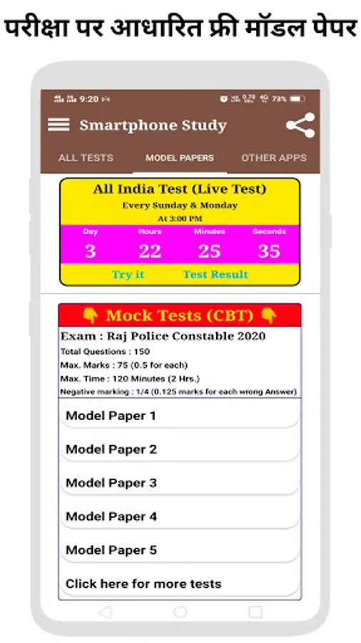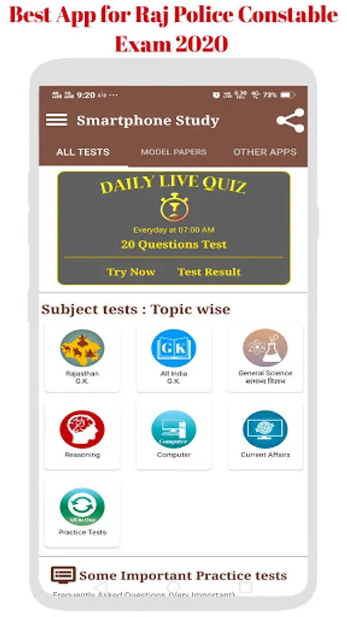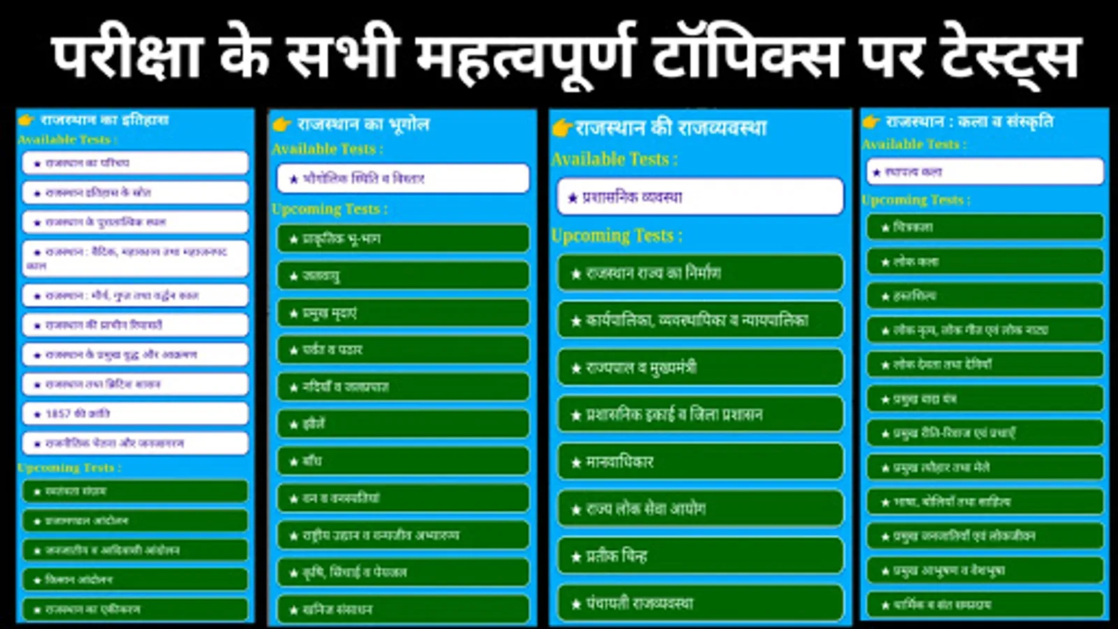 In this app users will get more test for Raj Police Exam with daily tests, Monthly tests and weekly test for exam.