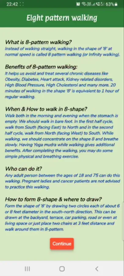 ‘Eight pattern walking’ (also called ‘Infinity walking’) is an android mobile application that has the following features:
