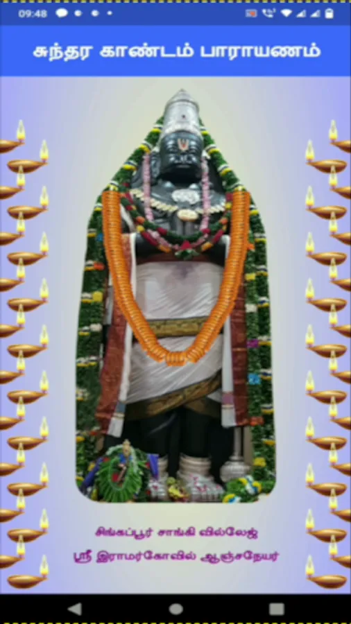 At the starting of the app, we are blessed by the Singapore Changi village Sri Ramar temple Anjaneyar.
