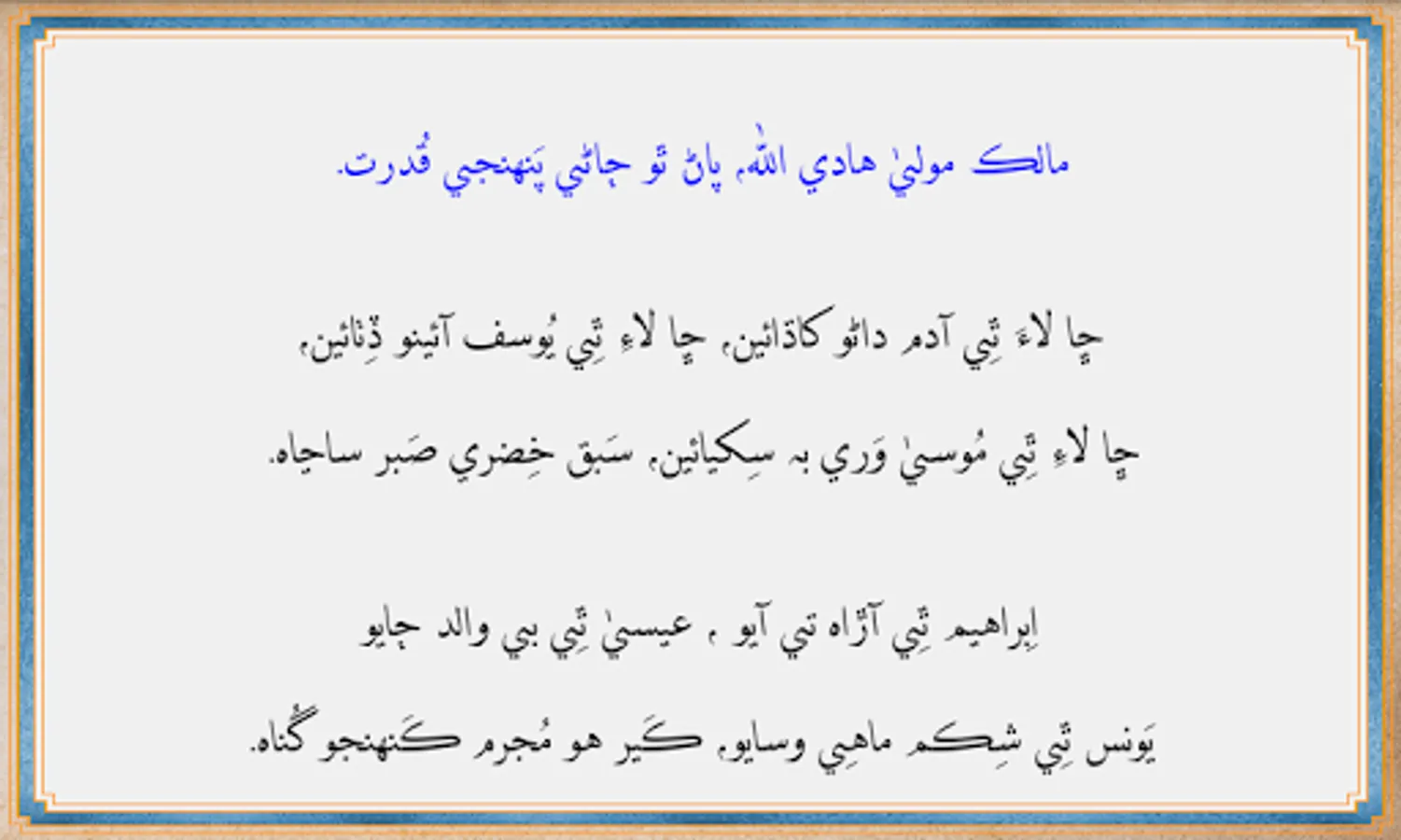 هي ڪلام اڳ ۾ ڪتاب جي صورت ۾ پبلش ٿيو هو. دوستن جي ڪافي اصرار تي حاضر آهي سائين جي ڪلام جي اينڊرائيڊ اپليڪيشن. هڪ اهڙي اپليڪيشن جنهن ۾ هر قسم جون معياري سهولتون موجود آهن، جيڪي هن اپليڪيشن کي ڪتاب جي بدران ايپليڪيشن جي صورت ۾ پيش ڪن ٿيون. انهن سهولتن جون مختصر تعارف هيٺ ڏجي ٿو: