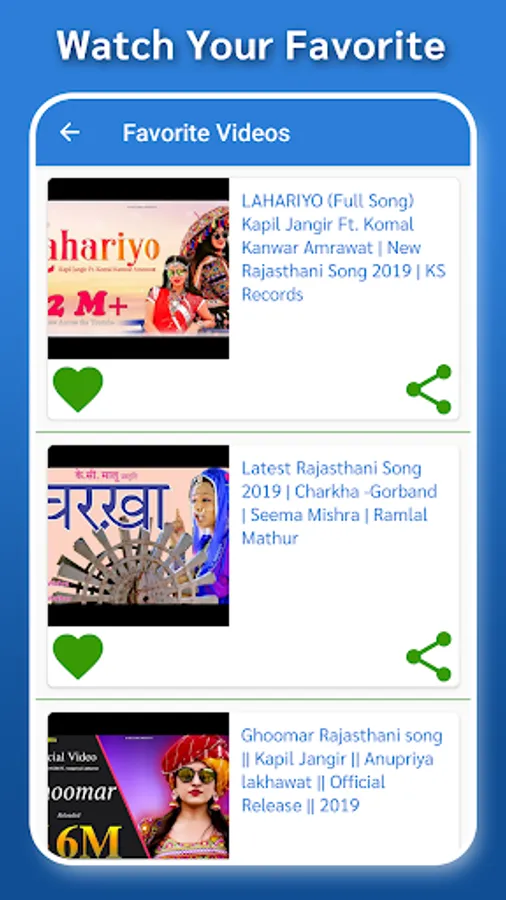 Lets watch Rajasthani video songs and enjoy the beauty. Download this free rajasthan video app with good user interface and design.