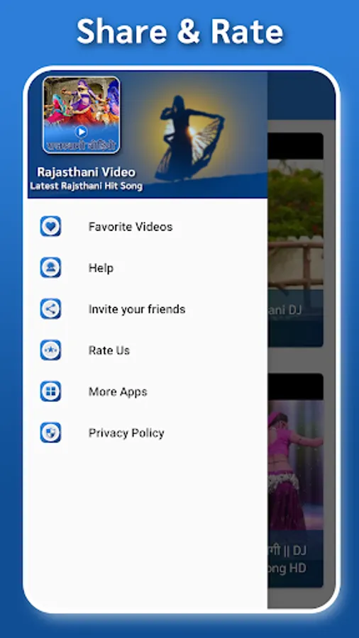 राजस्थानी वीडियो गाने or राजस्थानी गाने have free videos songs. Now you can enjoy free rajasthani videos with latest DJ songs, geet from this rajasthani video app.