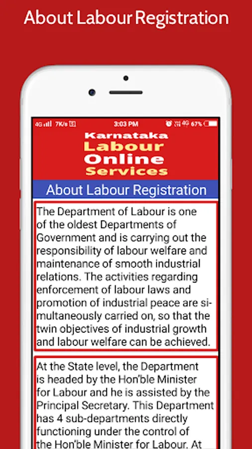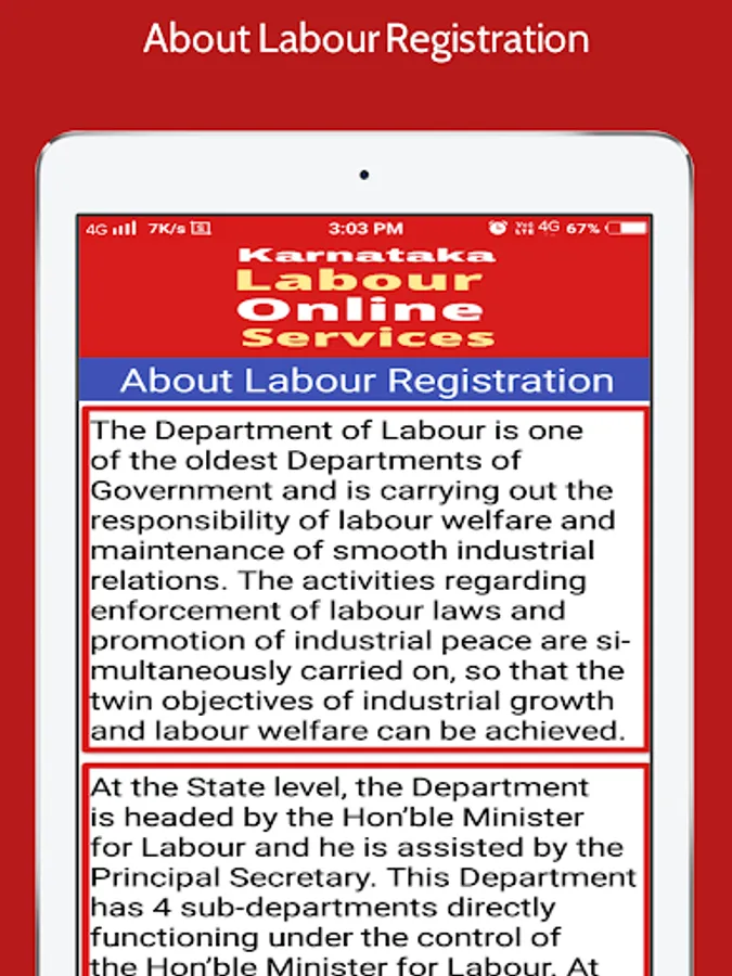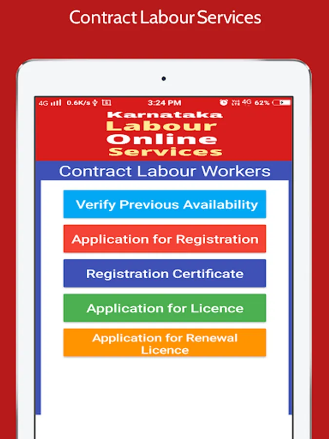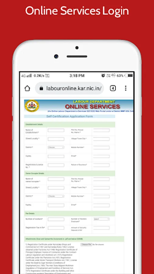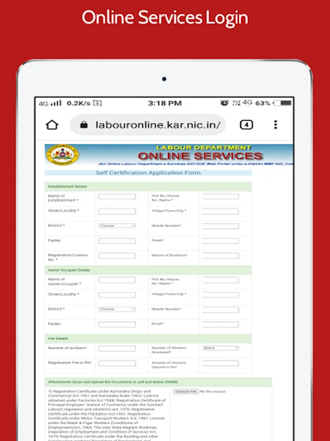 ✓Labour Department Online Services is an Online Facility for Registration, Issue Of Licences and Renewal and Amendment of Registration and Licences under the various Acts of the State and Central Labour Laws and Rules being Enforced by the Department of Labour, Government Of Karnataka. The Department, as part of its functions, enforces various laws in the State which require citizens to interact with the department as part of adherence to various State and Central Enactments. The purpose of the Portal is to Cover the following functions of the Department.