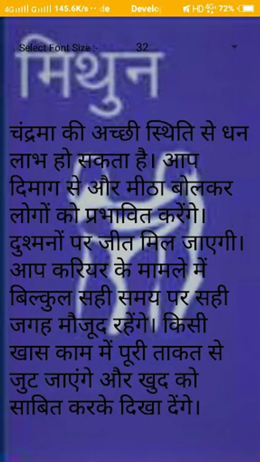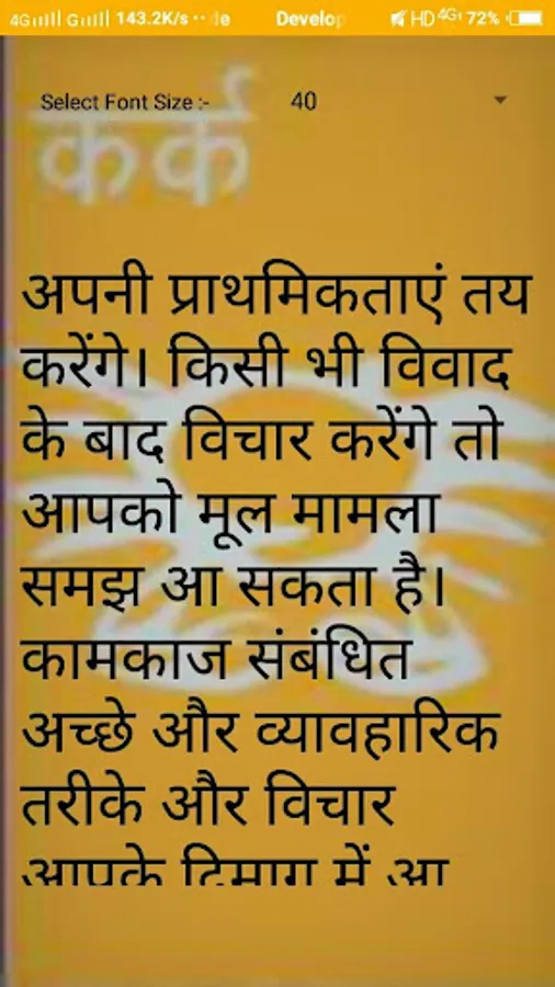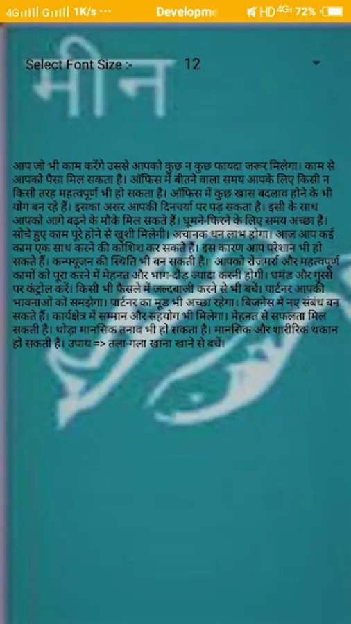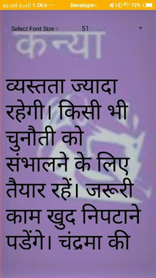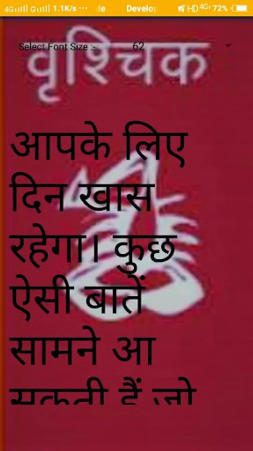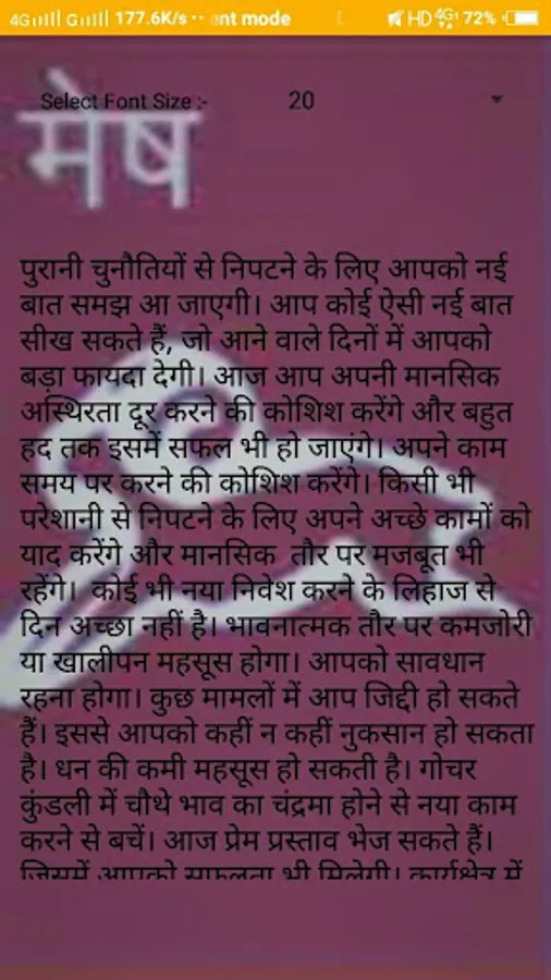 This is a daily horoscope app which will show you the accurate horoscope of your rashi. To know your horoscope just open the app and select the rashi to get the daily horoscope. This app will fetch the rashi details from the net will show it to your smartphone. In this app user can also increase the font size according to need.