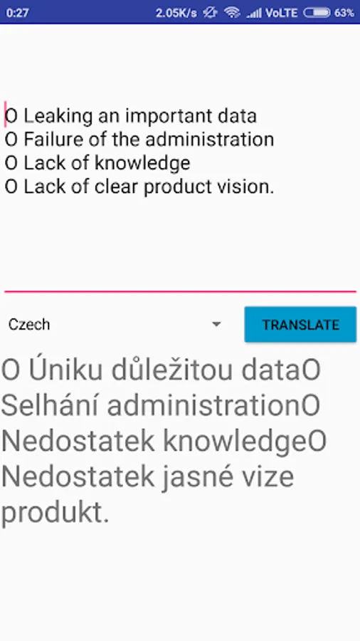 Translation work only on data connection.
