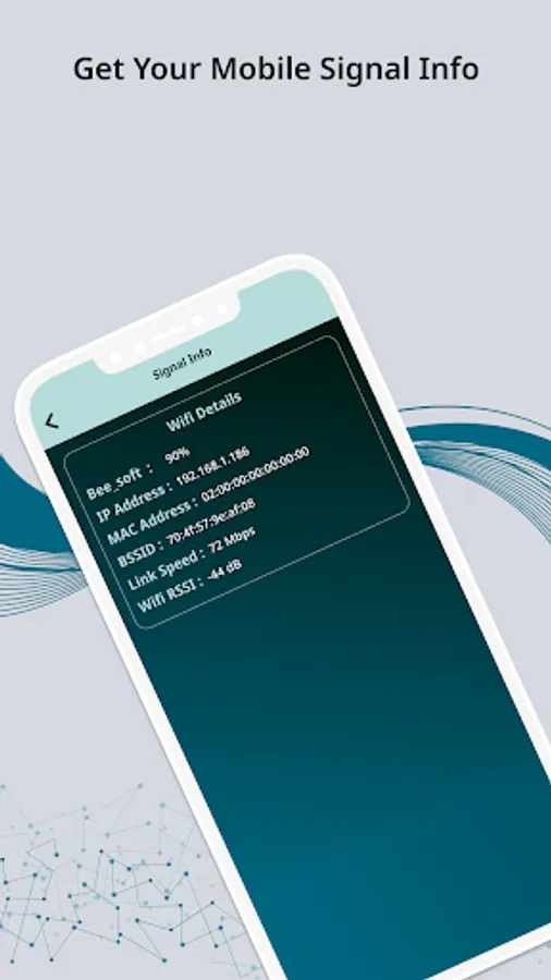 Signal Info: Signal info shows you the details of the connected Wifi like Signal Strength, IP Address, MAC Address, BSSID, Link Speed , and Wifi RSSI of the connected WiFi.