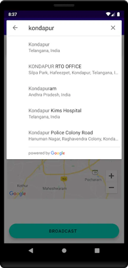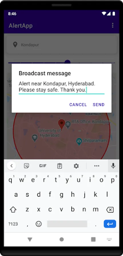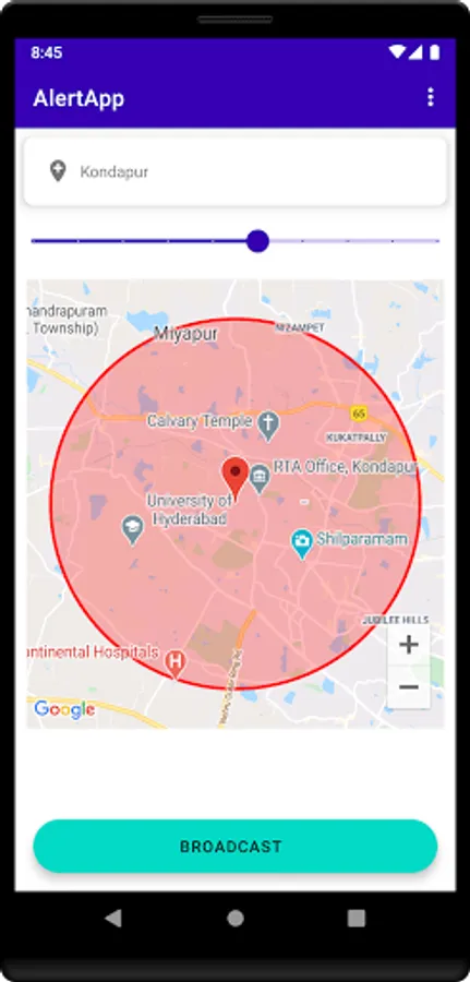 Once ADMIN broadcast message with location info then those connected clients present at the location receives the alert info.